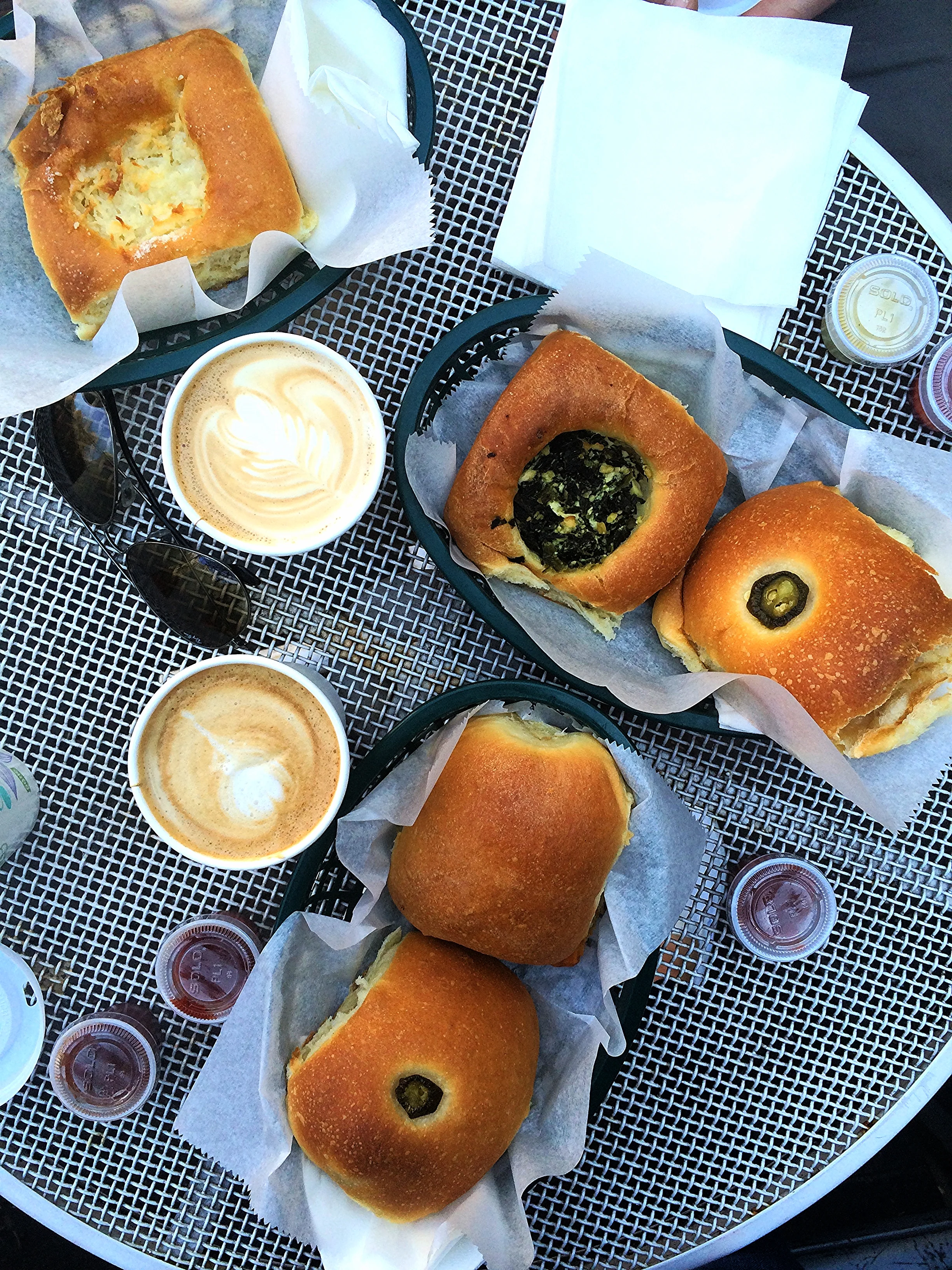 Kolaches are a delightful doughy treat of Czech origin. They made their way to Texas back in the day, and can now be found at many bakeries throughout the state. Traditionally, kolaches are made with a slightly sweet, yeasted dough and contain sweet fillings such as poppy seeds, fruit compotes, or cottage cheese. Nowadays, many Texan bakeries make savory versions filled with sausage, eggs, and cheese. I was so excited to find a kolache spot in Brooklyn, owned and run by a Texan, that bakes fresh kolaches from scratch every day! Brooklyn Kolache Co. makes some seriously legit kolaches, and I love that they use seasonal, locally sourced, and organic ingredients. My favorites are the pumpkin, coconut, and spinach & feta! Enjoy yours in the outdoor garden out back!